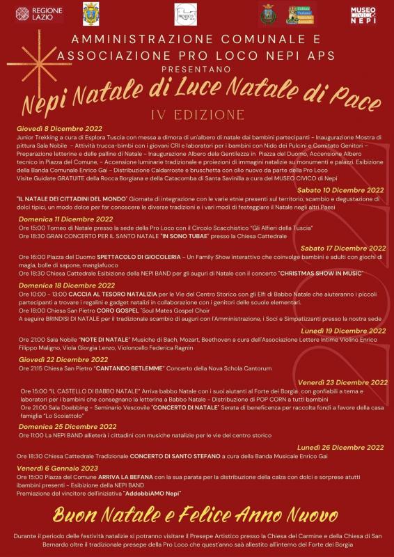 Per tutto il periodo delle feste di Natale, la Pro Loco e il Comune di Nepi hanno organizzato eventi.
