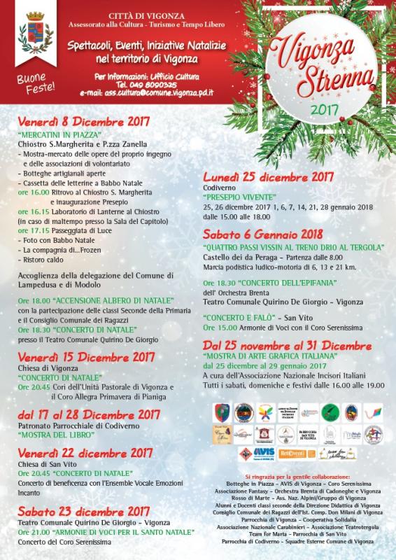 L'Amministrazione comunale invita agli eventi di Natale intitolati Vigonza Strenna, che vanno dall'8 dicembre al 6 gennaio 2018.