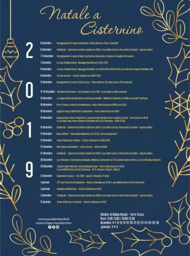 Dal 6 dicembre 2019 al 12 gennaio 2020 decine di eventi animano il Natale a Cisternino: musica, spettacoli, tombola, festa di Capodanno e tanto altro ancora.