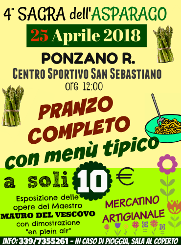 Come ormai di consueto da 4 anni a questa parte, il 25 aprile a Ponzano Romano (RM) si terrà la Sagra dell’Asparago, una giornata di festa all’insegna della buona cucina, in cui la farà da padrone ovviamente lui, l’asparago.