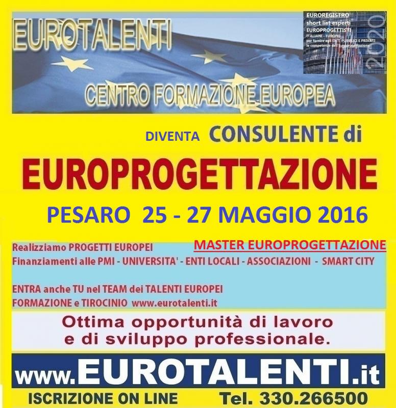 A PESARO Master in europrogettazione dal 25 al 27 Maggio 2016