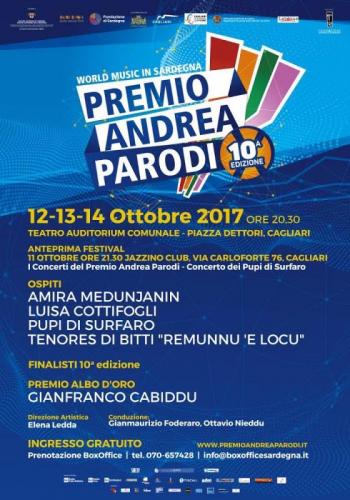 Anche quest'anno la world music trova casa a Cagliari al Premio Andrea Parodi, l'unico concorso italiano dedicato appunto alla world music che tocca quest'anno il traguardo della decima edizione, in programma dal 12 al 14 ottobre al Teatro Auditorium Comunale, con la direzione artistica di Elena Ledda.