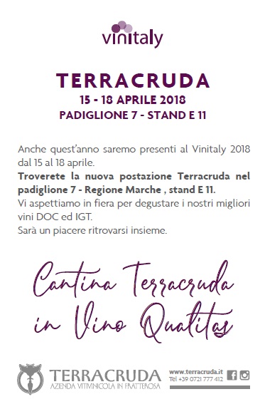 Cantina Terracruda a Vinitaly 15/18 Aprile 2018!