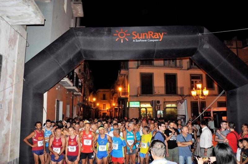 Alle 21,00 in punto gli atleti erano chiamati sotto l’arco di partenza posto in Piazza Municipio, ed ecco le prime emozioni con l’interminabile minuto di silenzio per onorare la memoria delle vittime della recente strage di Barcellona in Spagna, il silenzio invadeva di colpo la Piazza ed i volti dei presenti di rattristavano, qualcuno pregava perché questi atti di terrorismo finiscano per sempre, al grido di Pace-Pace-Pace e l’applauso liberatorio il Giudice Starter richiamava l’attenzione perchè era l’ora della tanto sospirata partenza.