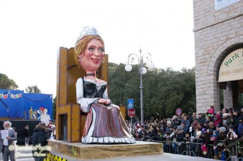Oltre 4.500 figuranti, carri, gruppi, musiche e coreografie limitate a causa della nevicata hanno comunque coinvolto i presenti. Gli Sbandieratori di Arezzo, ormai piacevole presenza della più amata festa popolare hanno aperto il corteo . Le Latin Majorettes in alta uniforme, incuranti del gelo, hanno affrontato il percorso insieme ai ballerini cubani professionisti Angela Jauregui e Momar Mane. Il gruppo "misto", formato da venti ballerine (majorettes e corpo di ballo), ha presentato coreografie inedite e originali, preparate appositamente per questo evento, unendo ai ritmi cubani l'utilizzo del Baton Twirling.