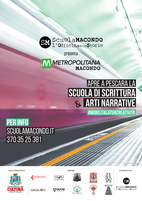 Si chiama Metropolitana Macondo ed è il nuovo progetto della Scuola Macondo – l'Officina delle Storie dell'autore Peppe Millanta e della Psicodrammatista Valentina Bonaccio: una scuola di scrittura e arti narrative che invaderà il centro di Pescara, sfruttando dei luoghi non convenzionali come fossero stazioni di un unico tracciato.