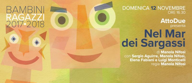 Nel Mar dei Sargassi, per la regia di Manola Nifosì, con Sergio Aguirre, Manola Nifosì, Elena Fabiani e Luigi Monticelli, che ne firma anche le musiche, racconta dell’isola come luogo della magia, dell’immaginazione, del sogno, dell’utopia, del possibile non ancora realizzato. Ciascuno possiede una mappa che può condurlo alla ricerca del proprio tesoro. Ma una volta conquistato, non c’è tesoro, tramonto o gemma preziosa che possa scaldare il cuore se non si ha nessuno con cui condividere la gioia che esso procura.