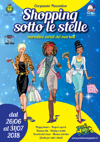 Tutti gli anni il periodo che va dall'ultimo martedì di giugno al primo di agosto (quindi per sei martedì consecutivi) dalle 20.00 alle 24.00 si svolge a Carpaneto P.no la manifestazione "Shopping sotto le stelle".