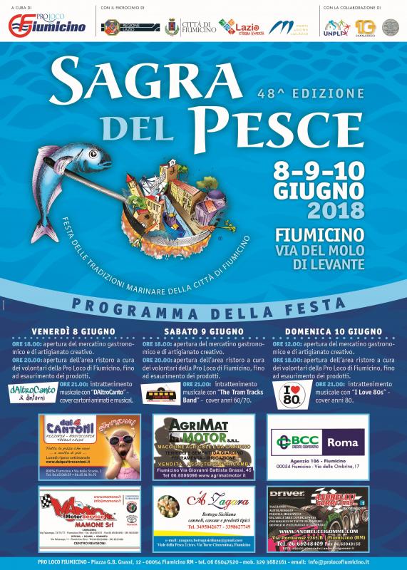 Sono i numeri della 48° "Sagra del Pesce-Festa delle tradizioni marinare della Città di Fiumicino", organizzata dalla Pro Loco con il patrocinio del Comune costiero, della Regione Lazio e dell’Unione Nazionale delle Pro Loco d’Italia, in scena dall'8 al 10 giugno a ridosso del Molo di Levante del porto canale, tra piazzale Molinari e Pozzoli, scenario ormai abituale dell’appuntamento.
