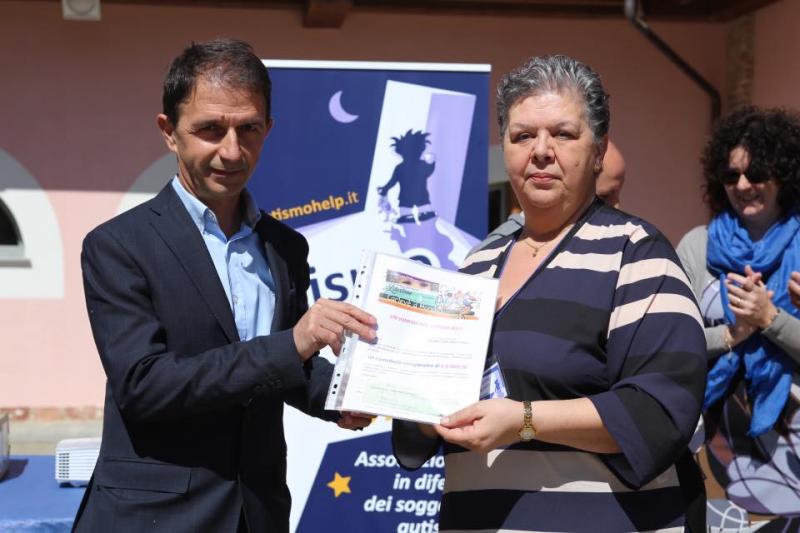 Presso il centro autismo “Cascina Nibal” di Mondovì, alla presenza dell'assessore Guido Tealdi, del presidente della Famija Monregaleisa Enrico Natta e del “Moro” Carlo Comino, la famiglia Cavarero ha affidato il materiale acquisito seguendo il progetto proposto dall'Associazione Autismo Help per un valore complessivo di 5.000,00 Euro.