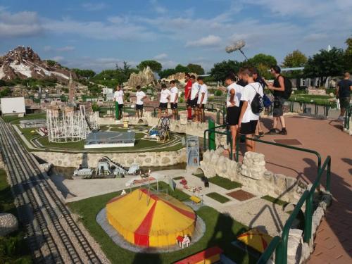 Ecco quindi l’idea di portarli a Italia in Miniatura. Il parco, con tutte e 20 le regioni rappresentate con oltre 270 perfette riproduzioni in miniatura di monumenti, scorci e paesaggi, ha conquistato i ragazzi e ispirato il Mister a improvvisare sul posto un quiz… di cultura geografica.