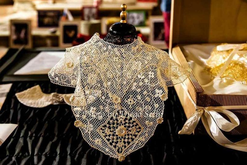 A ideare e realizzare lo splendido colletto un gruppo di affiatate ricamatrici composto da Gabriella Albertoni, Agata Belardoni, Antonella Catalano, Giuliano Ferri, Mirella Ragni, Maria Pia Simonetti che, con la loro passione, mantengono nel piccolo borgo lacustre l’antica tradizione del ricamo a filet modano.
