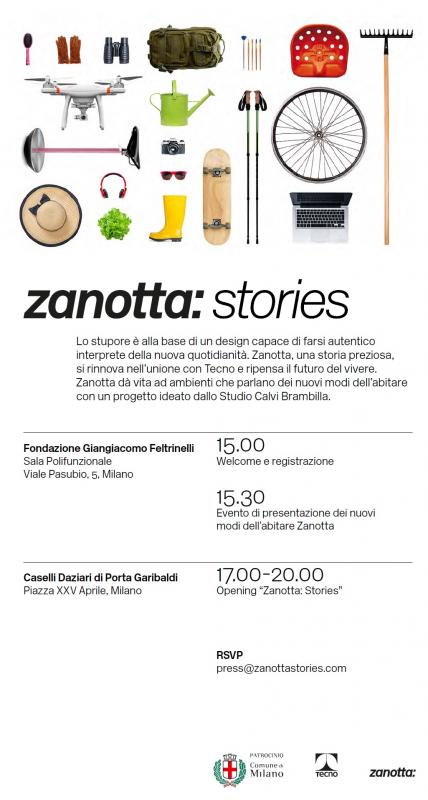 Giuliano Mosconi, Presidente e Amministratore Delegato Tecno e Zanotta, ha il piacere di invitarti all'inaugurazione dell’evento "Zanotta: Stories" che si terrà a Milano giovedì 5 ottobre.