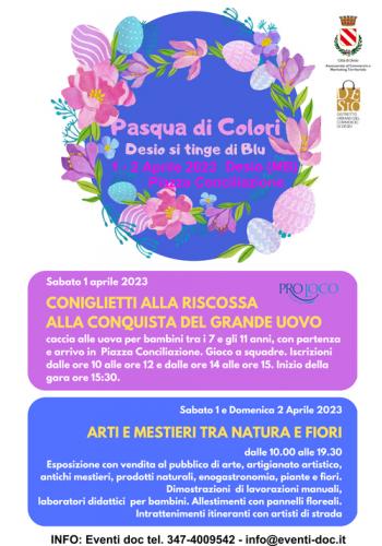 Sabato 1 e Domenica 2 aprile, in Piazza Conciliazione si terrà la manifestazione “Pasqua di Colori – Desio di tinge di Blu”, promossa dal Comune di Desio con le seguenti iniziative: