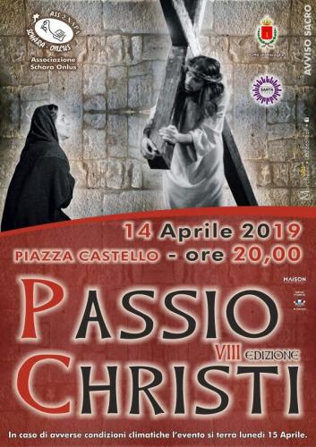 La Passio Christi vedrà il suo inizio nel suggestivo Largo Castello dove Gesù spezzerà il pane con i suoi Discepoli, nella stessa cornice sarà tradito da Giuda, tentato dal demonio e arrestato per mano dei soldati. Successivamente Gesù sarà portato davanti agli uomini della legge, il Sinedrio, sito in piazza Margherita.