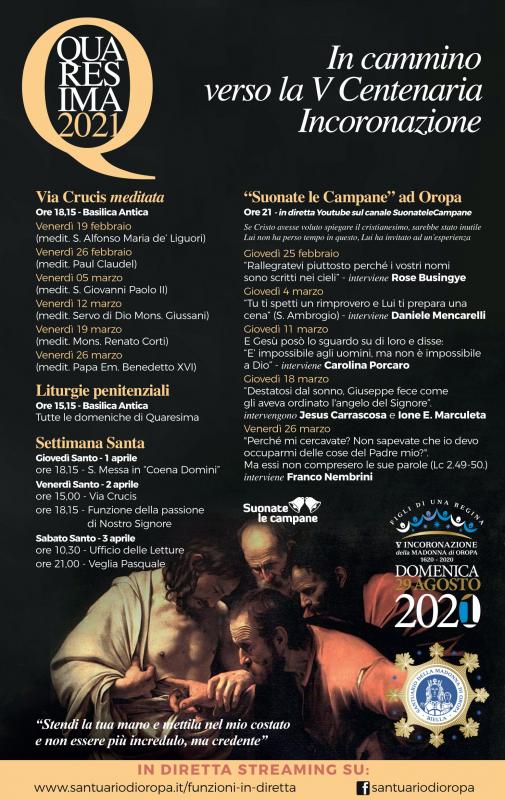 Il Santuario di Oropa propone, per il periodo di Quaresima, un programma ricco di incontri e di testimonianze in preparazione della Santa Pasqua.