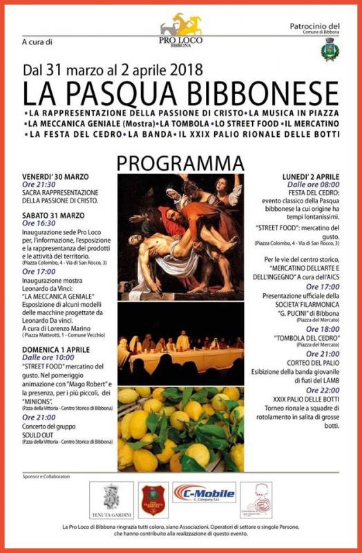 Da sabato 30 marzo a lunedì 02 aprile 2018 si svolgono gli eventi della Pasqua Bibbonese 2018.