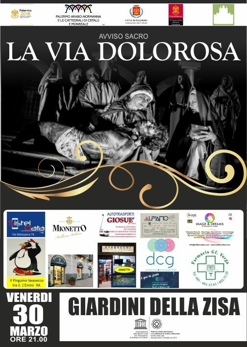 Torna anche per la Pasqua 2018 nella sera del Venerdì Santo (30 marzo 2018) la Sacra Rappresentazione della Passione di Cristo "La Via Dolorosa" ai Giardini della Zisa di Palermo (PA).