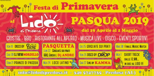Pasqua e Pasquetta al Lido di Predosa dove si festeggerà all'aria aperta con grigliate, giochi, eventi, musica e tanta allegria dal 19 Aprile al 01 Maggio 2019.