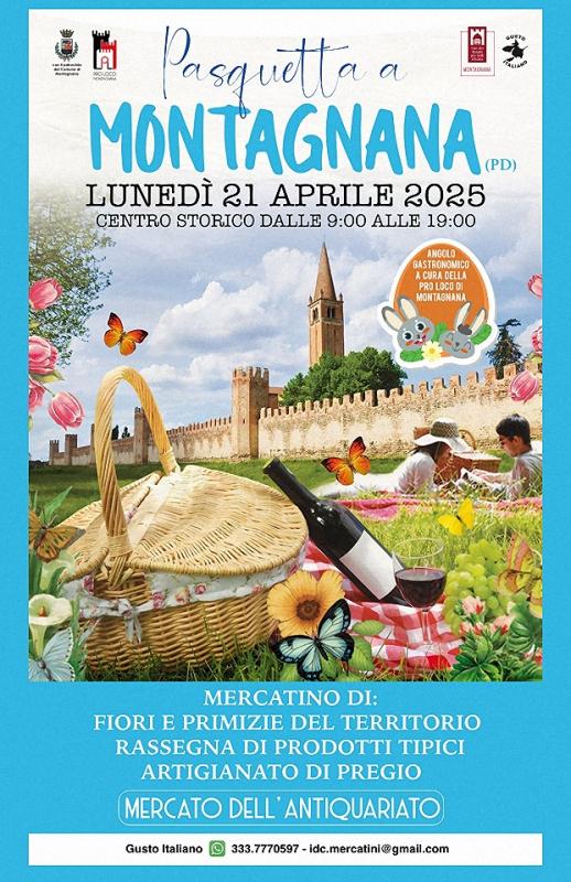 Ass.ne Gusto Italiano con il patrocinio del Comune di Montagnana (PD) propone: Lunedì 21 Aprile 2025 Pasquetta a Montagnana.