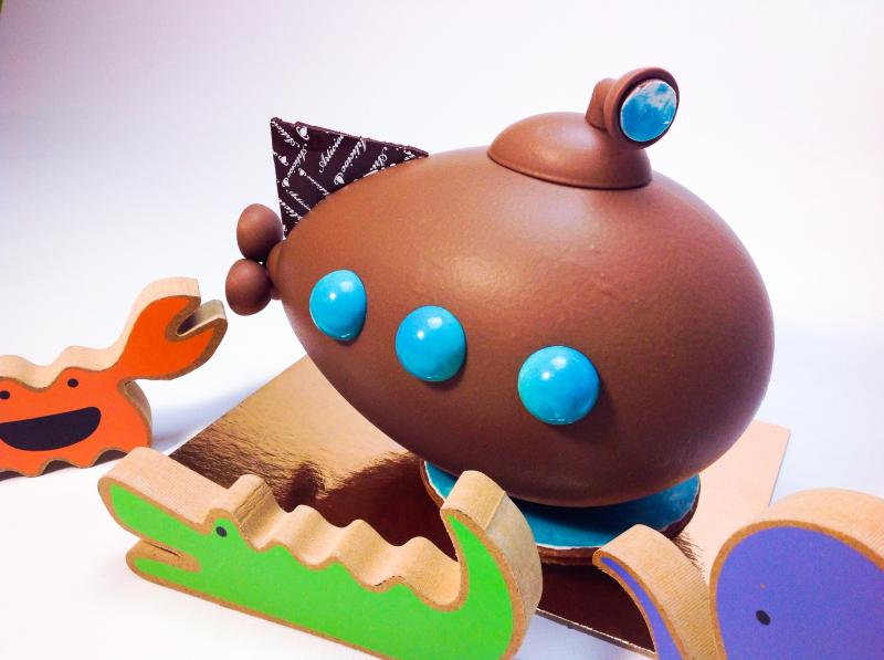 Per i più giocosi e per i più piccoli : l’Uovo Figgeu bianco e latte a 120 €/kg, il coniglio ed il galletto (al latte o fondente) da 150 gr a 15 €, la campana da 110 gr (al latte o fondente) e l’uovo con righe da 100 gr (al latte, fondente o biondo), a 12 €. E poi ancora gallina e campana da gr 200 (al latte o fondente), a 20 €.La linea artistica riserva tante novità e permette di nuotare negli abissi con un Sottomarino dotato persino di elica e periscopio, o diverte grazie al Guscio d’uovo che si spezza facendo fuoriuscire tuorlo e albume, il tutto sempre in cioccolato e a 120 €/kg!Completano la collezione le ovette sfuse con sorpresa, ma a richiesta dei singoli clienti si possono realizzare uova personalizzate di ogni genere.Per chi non vuole rinunciare a un cioccolato di qualità o per chi è alla ricerca di varianti sfiziose per portare in tavola qualcosa di nuovo, le uova di Pasqua artigianali della Boutique savonese, vestite dalle mani esperte della designer di Articioc Carolina Tarasco, che confeziona al top ogni prodotto, sono d’obbligo.Regali di tendenza e alta classe? Le scatole composte dalla tante praline gluten free dai gusti più svariati, marroni al rum, wasabi o assenzio per fare qualche esempio e poi i gianduiotti sia al latte che fondenti, la frutta candita tuffata nel cioccolato, i coloratissimi ed eleganti macarons e i tartufi alcolici o al chinotto presidio slow food di Savona.Da sottolineare che arricchiscono i banchi deliziosi cake pops, i cup cakes pasquali, le torte, e le monoporzioni di mousse au chocolat e protagoniste portatrici di pace in ogni casa, le gustose colombe mandorlate o al cioccolato a 25 €/kg.
