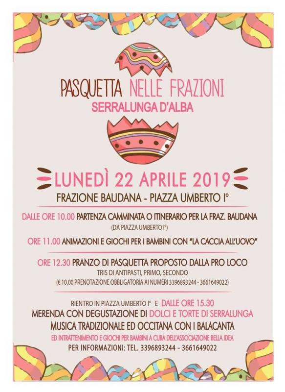 e dalle Ore 15.30: Merenda con degustazione di dolci e torte di Serralunga ed intrattenimento e giochi per bambini a cura dell'Associazione Bella Idea