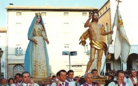 Nella Domenica di Pasqua, dopo la Messa vespertina, mentre le campane suonano a festa, due processioni, condotte dalla Confraternita della Buona Morte e Cristo Redentore, escono dalla Chiesa parrocchiale di San Michele Arcangelo e dalla Chiesa Collegiata di Santa Croce, trasportando l'una la statua di Gesù Cristo risorto (XVII secolo), l'altra quella della Madonna (XVIII secolo). Le statue si portano lentamente verso il centro di piazza Mazzini e si dispongono di fronte, mentre le campane tacciono. Quando i simulacri giungono a poca distanza l'uno dall'altro si salutano con un inchino: dalla simultaneità del movimento, si traggono auspici per l'anno in corso e per il raccolto.