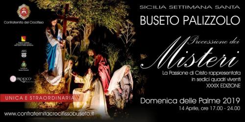 La Processione dei Misteri, ovvero la Via Crucis A Buseto Palizzolo, si svolge nel pomeriggio della Domenica delle Palme.