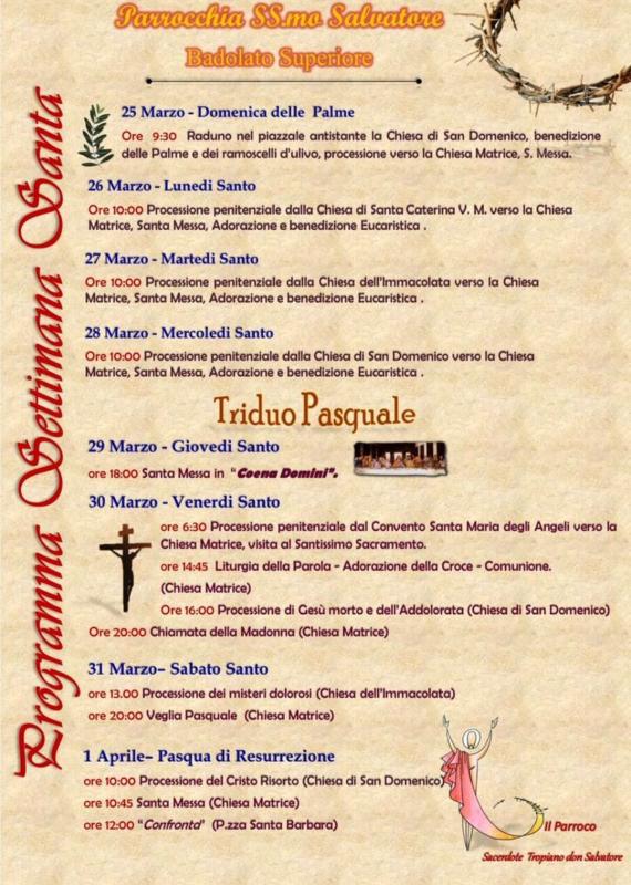 Il programma dei tradizionali riti della Settimana Santa di Pasqua a Badolato sono i seguenti: