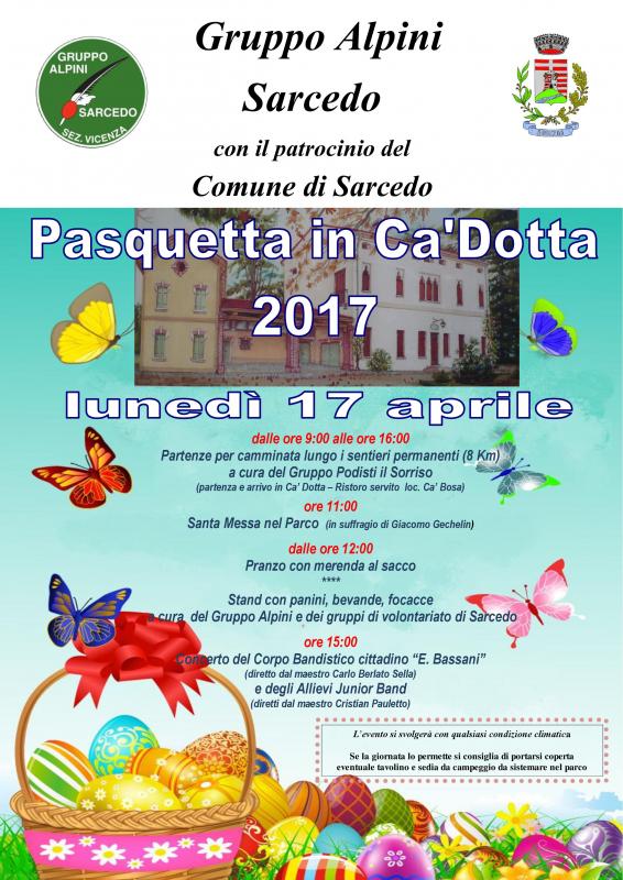 A Sarcedo (VI) un appuntamento di festa per tutta la famiglia per concludere il periodo di Pasqua: lunedì 17 aprile 2017 torna la Pasquetta in Villa Ca' Dotta.