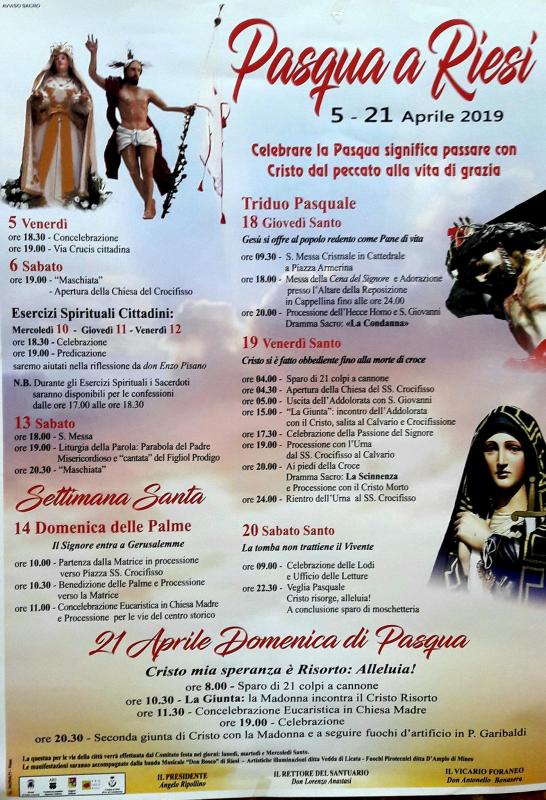 La Settimana Santa di Pasqua a Riesi è fatta di riti che si ripetono ogni anno e celebrano la morte e resurrezione di Gesù Cristo.