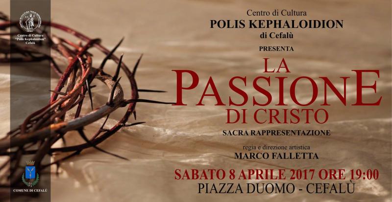 Suggestiva e sacra rappresentazione della Passione di Cristo a cura del Centro di Cultura Polis Kephaloidion con la regia e direzione artistica di Marco Falletta che si svolgerà intorno alla splendida cornice del Duomo di Cefalù il sabato che precede la Domenica delle Palme. Evento straordinario e coinvolgente che da qualche anno vede protagonisti circa 200 persone tra attori e comparse senza contare un seguito di spettatori che nelle diverse edizioni è risultato assai numeroso.