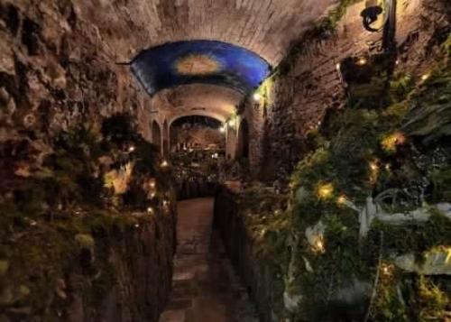 Il PRESEPE dell’ ANGELO : prende il nome dalla figura celeste che e’ raffigurata e dipinta nella volta della nicchia centrale della cantina.