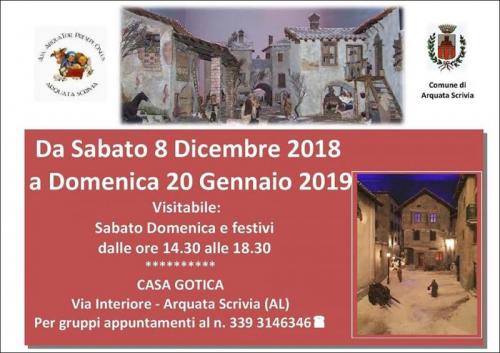 A Arquata Scrivia in provincia di Alessandria si svolge nei giorni da Sabato 08 Dicembre 2018 a Domenica 20 Gennaio 2019 la nuova edizione de Il Presepe - Tra Tradizione e Cultura.