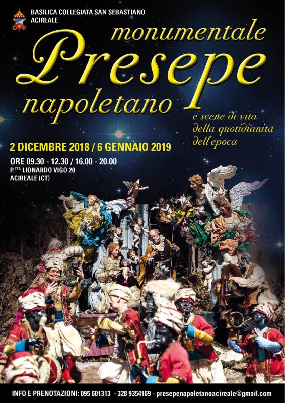 Dal 2 dicembre 2018 al 6 gennaio 2019 si potrà ammirare il Monumentale Presepe Napoletano nella Basilica S. Sebastiano ad Acireale.
