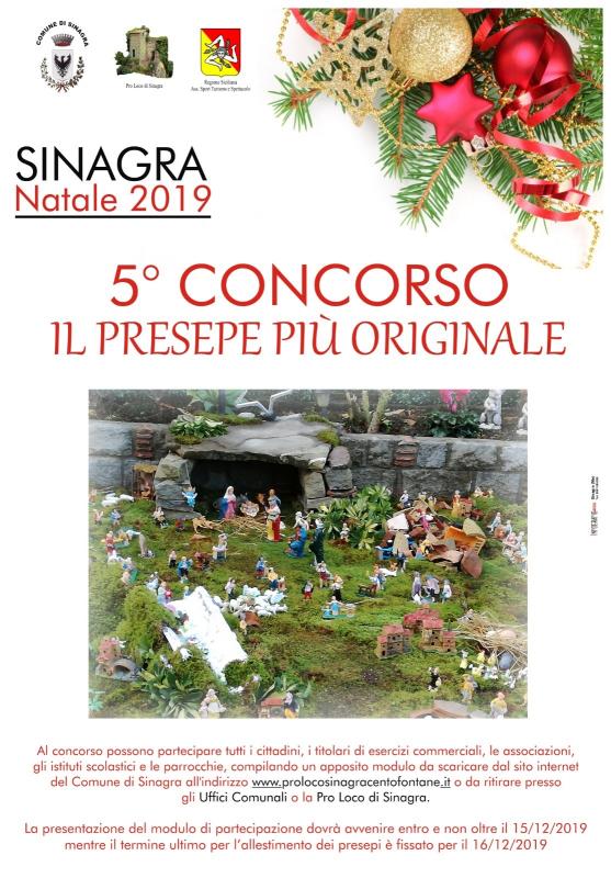L'Amministrazione Comunale e la Pro Loco di Sinagra, nell'ambito della valorizzazione delle attività turistiche e al fine di rendere partecipe tutta la cittadinanza alle festività natalizie 2019-2020, organizzano un concorso per la realizzazione del miglior presepe da esporre, negli spazi, negli angoli del paese o nelle vetrine.