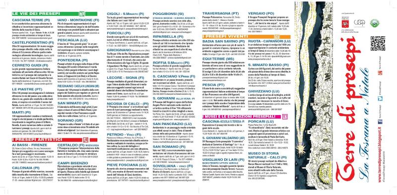 Da dicembre alla fine di gennaio in tutta la Toscana sono visibili decine di presepi. Due mesi per conoscere un nuovo volto della Toscana a Natale con la "Terre di Presepi", l'itinerario che coinvolge oltre settanta paesi.