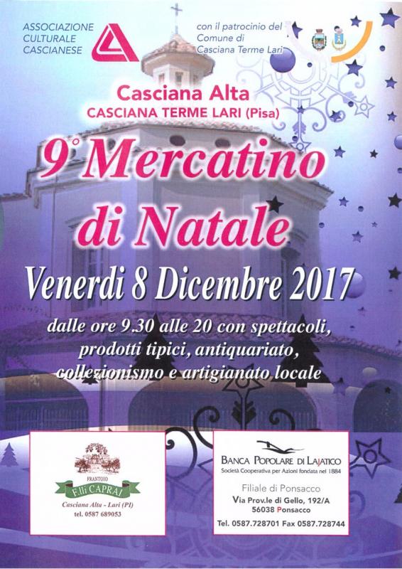 Cominciano gli eventi di Natale a Lari venerdì 8 dicembre 2017 con il nono mercatino di Natale che prevede il seguente programma: