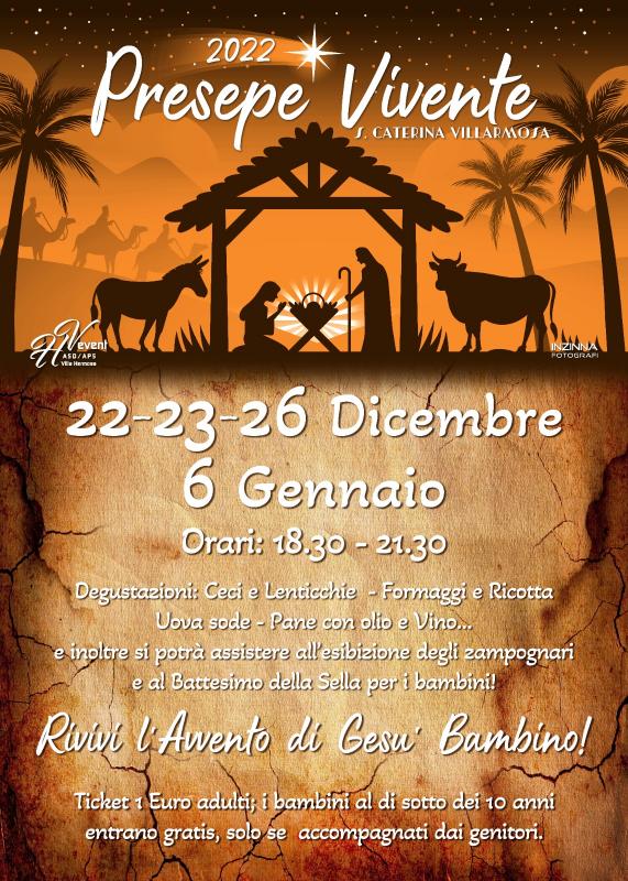 Presepe Vivente nel territorio di Santa Caterina Villarmosa (CL) nelle date del 22-23-26 Dicembre 2022 e 06 Gennaio 2023.
