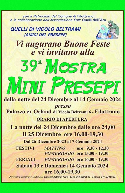 Potrete visitare la Mostra dei Mini Presepi a Filottrano il 25 Dicembre dalle ore 16.00 alle ore 19.30, mentre dal 26 Dicembre al 07 Gennaio nei seguenti orari: