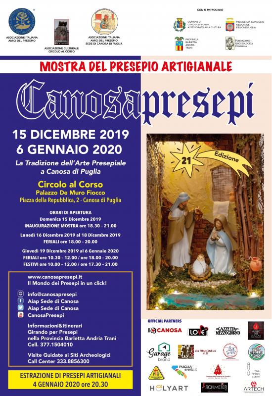 La Mostra del Presepio Artigianale “CanosaPresepi” viene organizzata dall’ Associazione Italiana Amici del Presepio Sede di Canosa di Puglia.