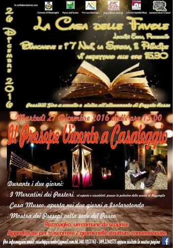 L'evento principale sarà il Presepe Vivente il 27 dicembre a Casaleggio (Rezzoaglio, Ge), con antichi mestieri, animali, storia del borgo in pietra, sapori e colori del luogo. i bambini potranno fare giri a cavallo sulla ormai storica Bertina, la Bardigiana amica dei bimbi. Assaggi di Salsicce prodotte al momento, frittelle, e polentata per i palati più golosi. La fiaccolata conclusiva porterà che vorrà a Rezzoaglio a piedi. Faranno da cornice iconografica i pensieri estratti dalle riflessioni di Don Tonino Bello
