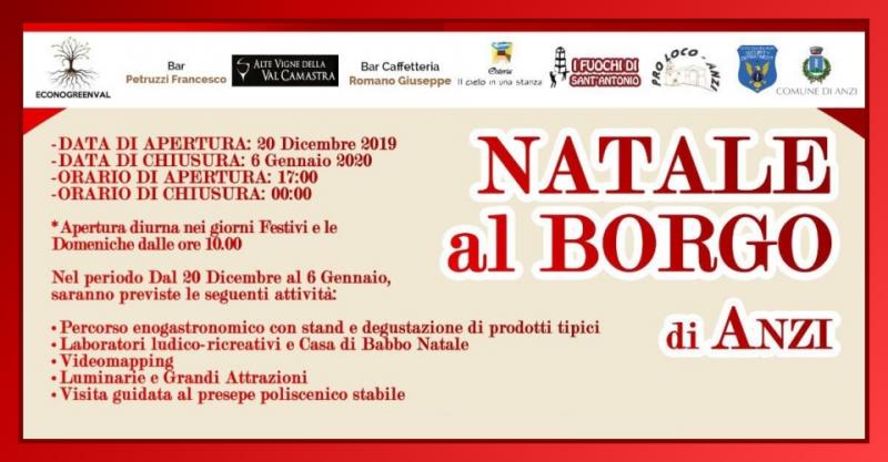 Ad Anzi in provincia di Potenza in occasione del Natale al Borgo si svolge nei giorni dal 20 Dicembre 2019 al 06 Gennaio 2020 dalle ore 17.00 alle ore 00.00 la nuova edizione del Presepe Poliscenico.