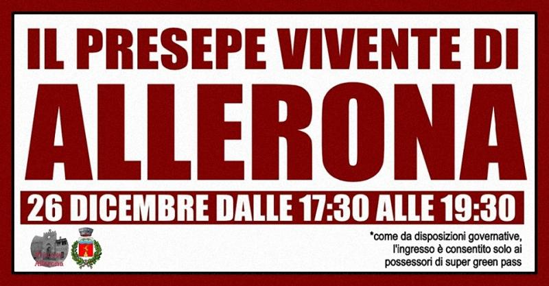 Domenica 26 Dicembre la Pro-Loco di Allerona e i suoi oltre cento figuranti, è lieta di invitare tutti alla ventesima edizione del Presepe Vivente, dentro a uno dei "Borghi più belli d'Italia".