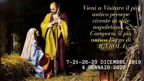 Si rinnova, anche quest'anno, l'appuntamento con la XXXII edizione del Presepe Vivente di Campora, frazione di Agerola, in programma nei giorni 07 - 21 - 26 - 29 Dicembre 2019 e 04 Gennaio 2020, dalle 16.30 alle 21.00.