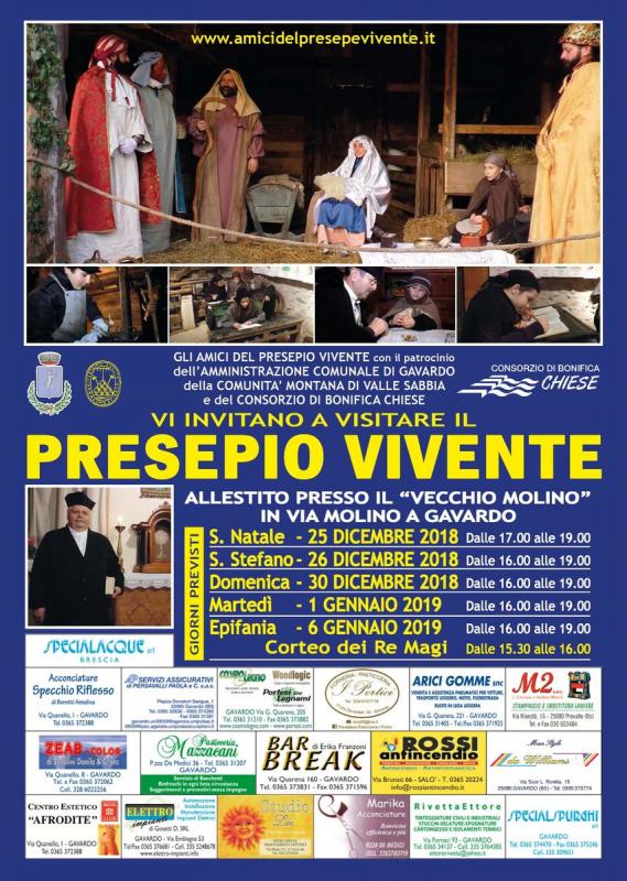 Il Presepe Vivente a Gavardo (16ª edizione) per il Natale 2018 si volge presso il Vecchio Mulino, in via Molino 59, nei seguenti giorni: