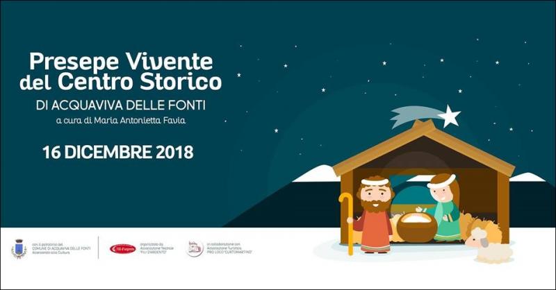 Grazie all’estro dell’Associazione Culturale Teatrale “Fili d’Argento” e all’ormai collaudata organizzazione della Pro Loco “Curtomartino”, con il patrocinio del Comune di Acquaviva Delle Fonti, torna il Presepe Vivente del Centro Storico a cura di Maria Antonietta Favia.