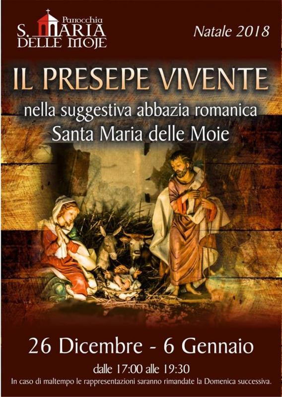 Per il Natale 2018 il Presepio Vivente di Moie (AN) si svolge nei giorni di Santo Stefano, 26 Dicembre 2018, e dell'Epifania, 6 Gennaio 2019, dalle ore 17 alle ore 19,30.
