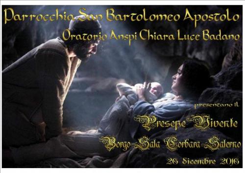 La Parrocchia San Bartolomeo Apostolo, l'oratorio Anspi Chiara Luce Badano, con il patrocinio morale del Comune di Corbara, in collaborazione con le associazioni presenti sul territorio, organizzano il suggestivo Presepe Vivente nel bellissimo Borgo Sala.