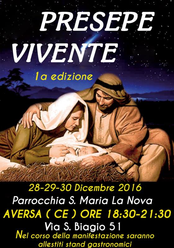La Parrocchia Santa Maria la Nova per aiutare sempre più a vivere e riscoprire il significato più intimo della celebrazione del Natale, organizza nei giorni 28 - 29 - 30 Dicembre 2016 dalle 18:30 alle 21:30 la 1° edizione del Presepe Vivente.